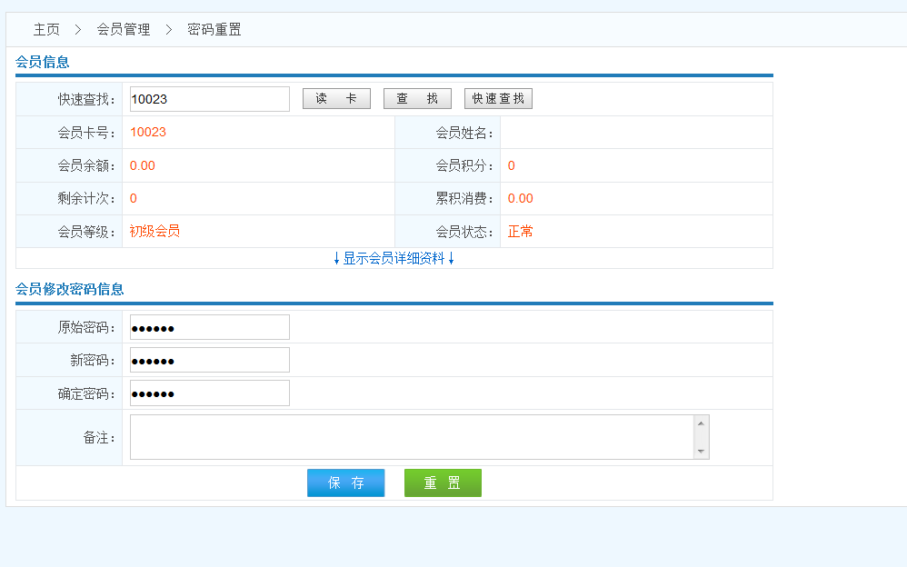 會(huì)員信息 可以通過(guò)刷卡或者錄入卡號(hào)或者通過(guò)快速查找