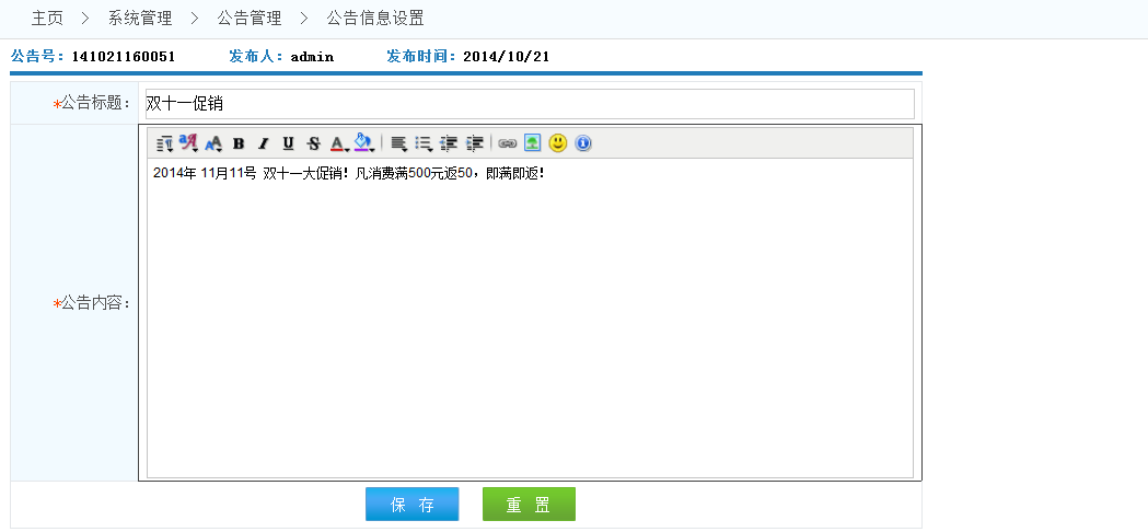 2.公告列表:在公告列表的操作一欄 可以對(duì)改公告進(jìn)行修改和刪除的操作