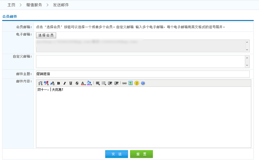 2.自定義郵箱:也可以不通過系統(tǒng)會員獲取郵箱,也可以自己編寫郵箱列表