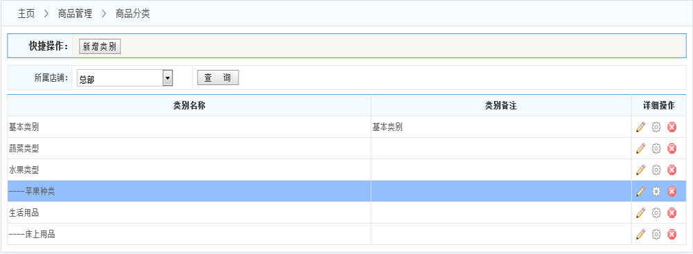 所屬店鋪:根據(jù)店鋪查找 查找指定店鋪下的商品分類!