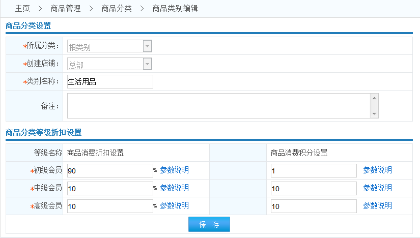 商品分類等級(jí)折扣設(shè)置: